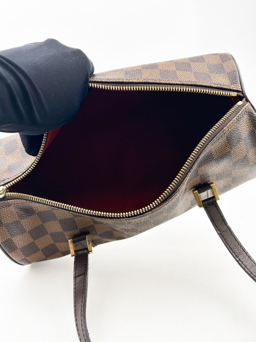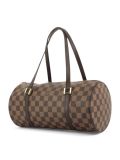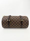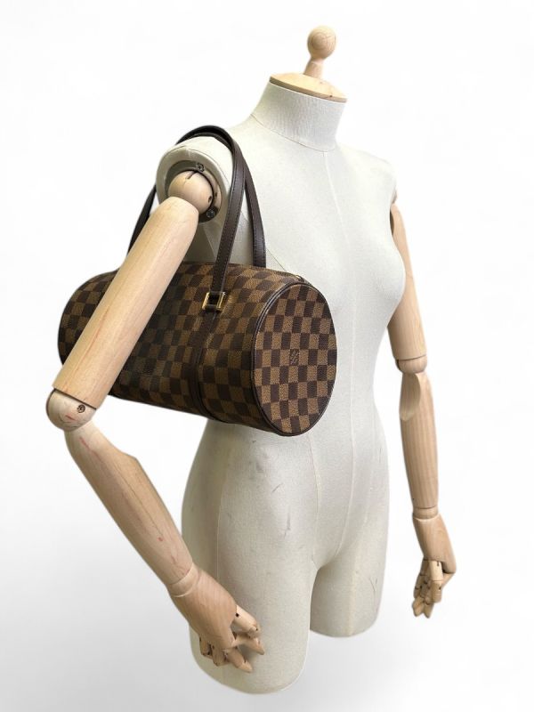 Élégant et emblématique, ce sac Louis Vuitton Papillon en toile Damier Ébène incarne à merveille l’esthétique intemporelle de la Maison. Sa forme cylindrique iconique et ses finition en cuir brun lui confèrent une allure à la fois raffinée et pratique. Léger et polyvalent, il se porte à la main ou à l’épaule pour un style chic en toute circonstance.