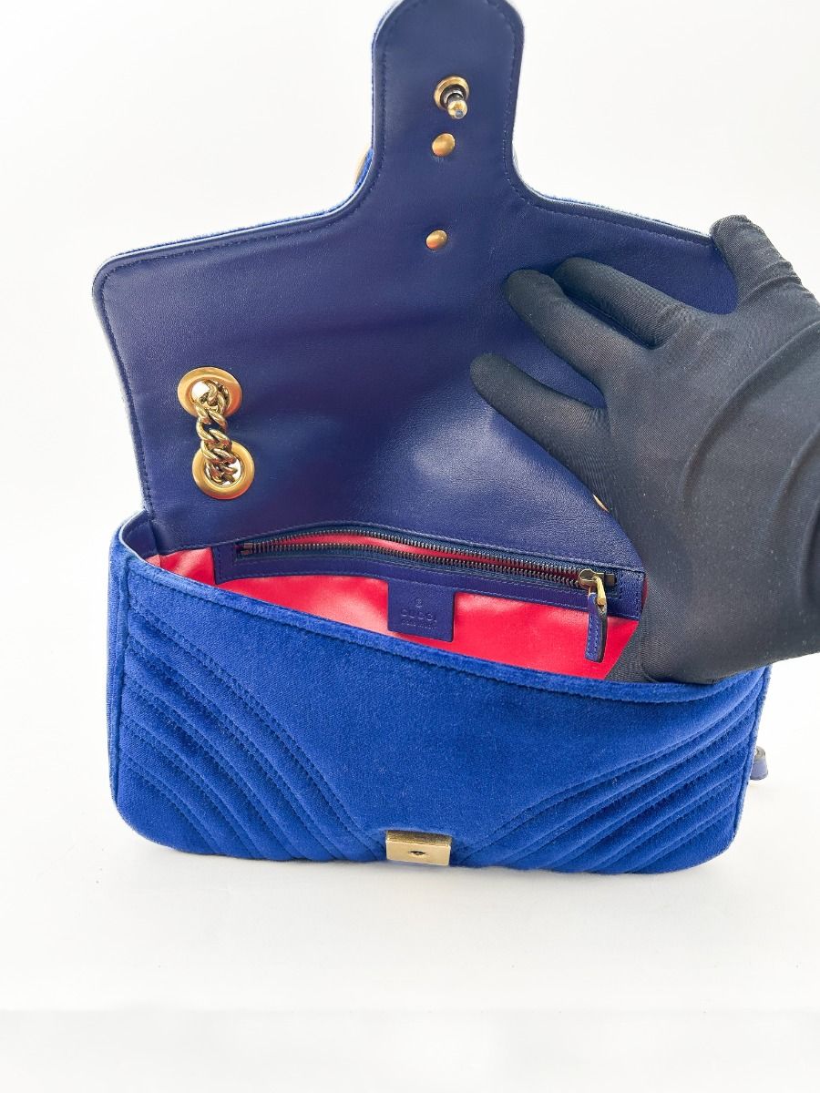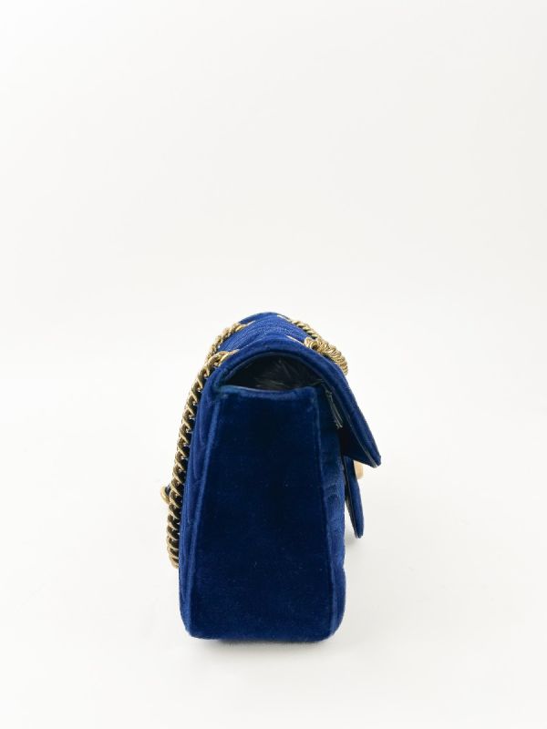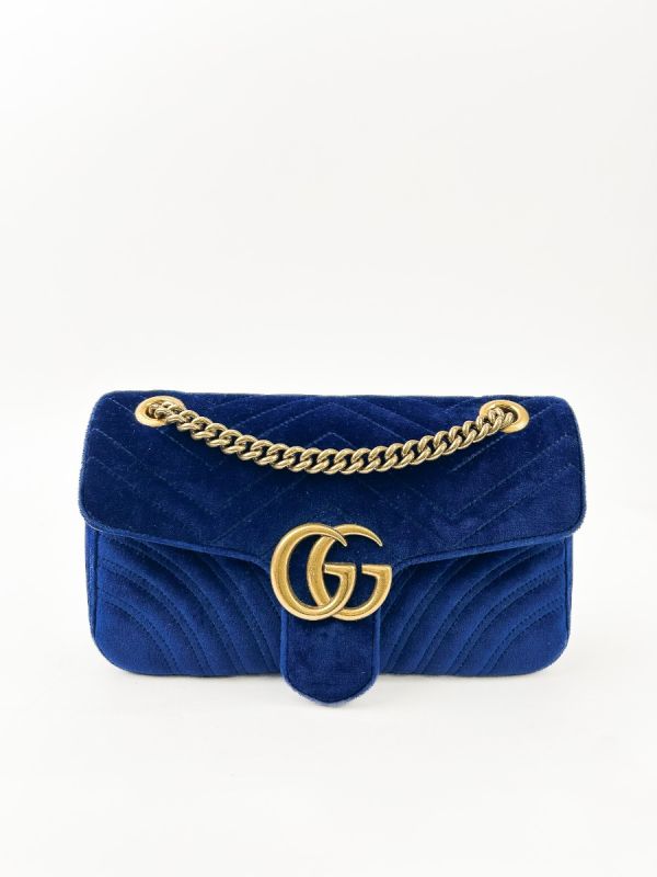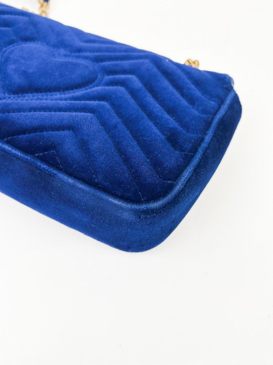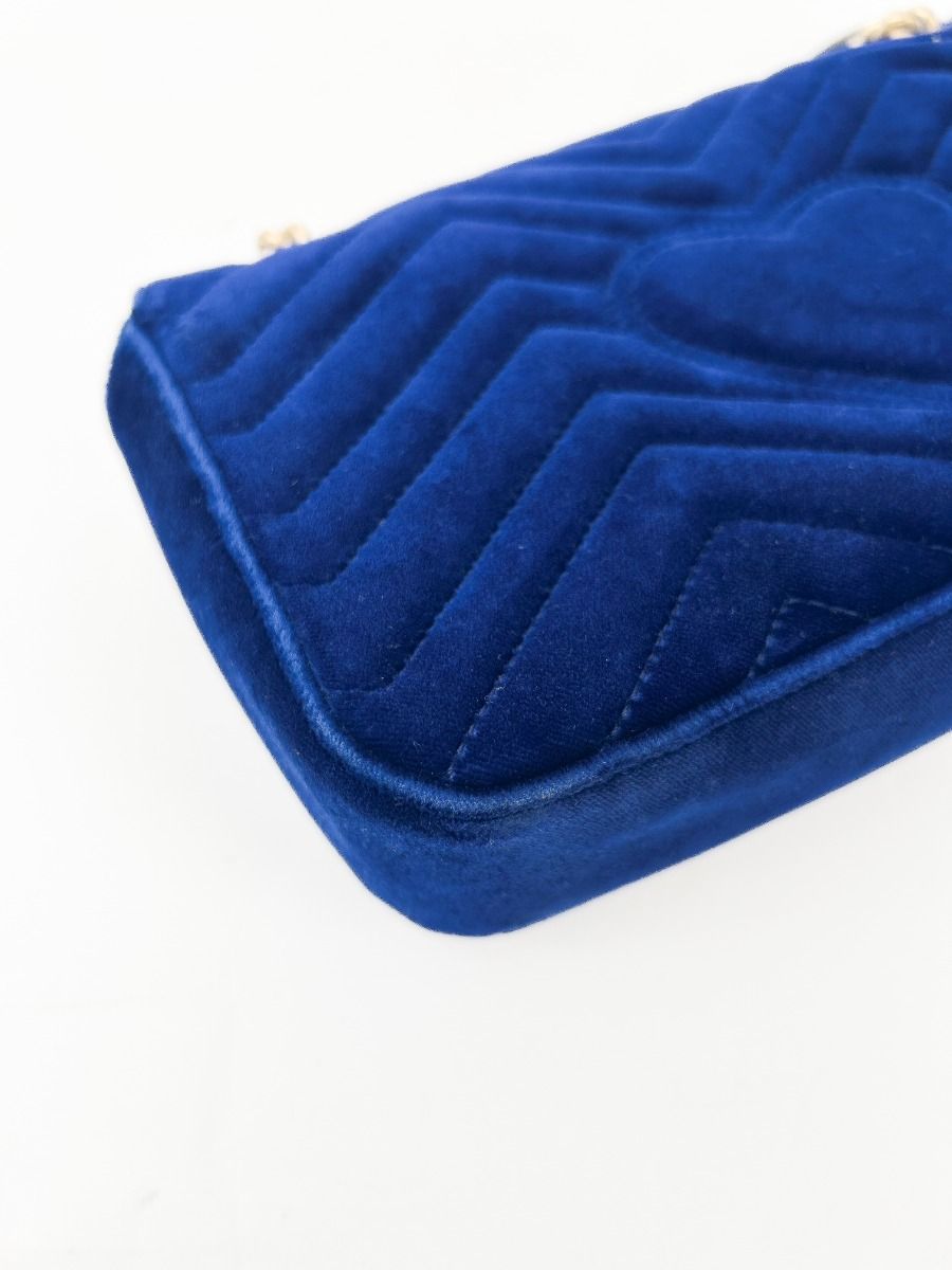 Sac Bandoulière Gucci GG Marmont Small En Velours Bleu