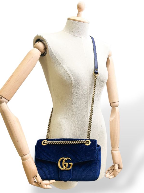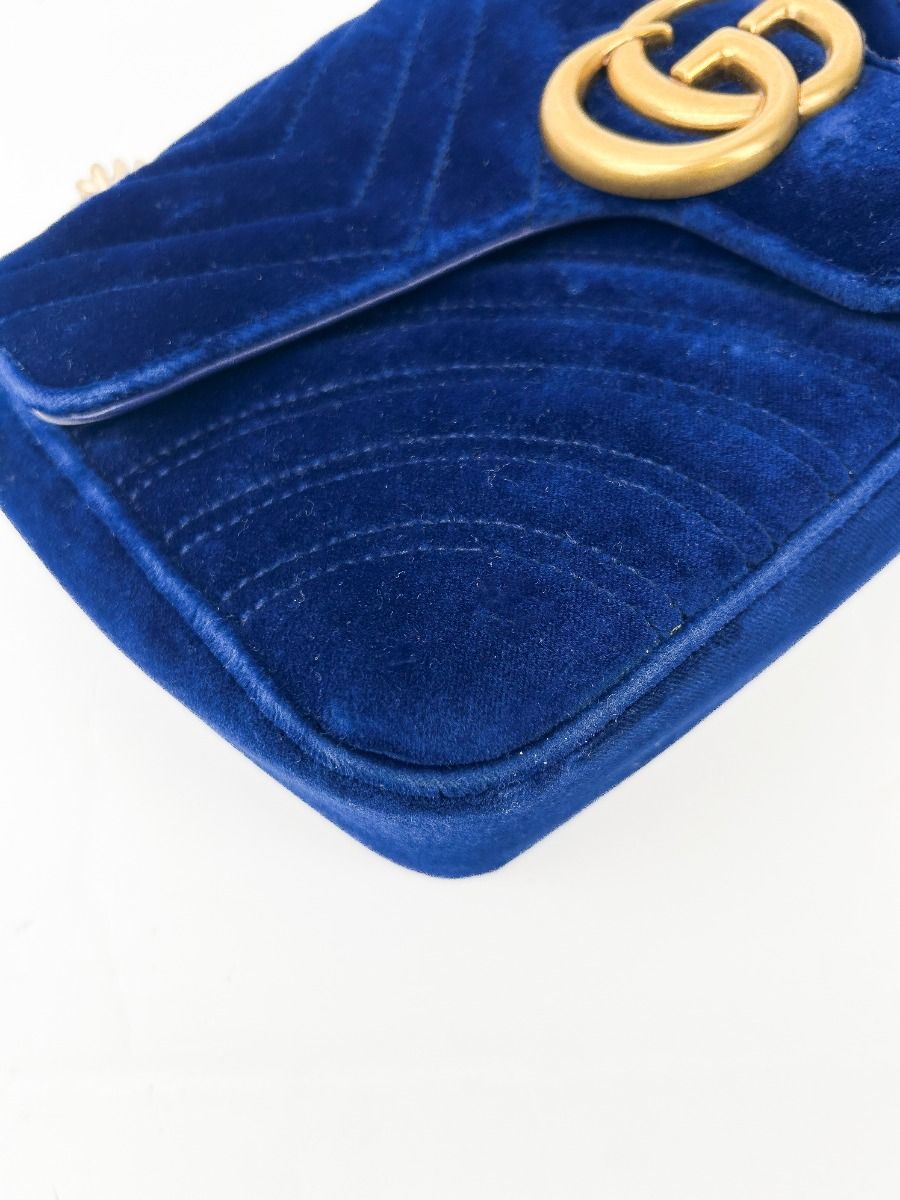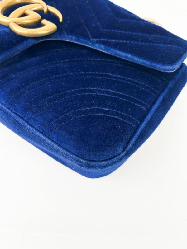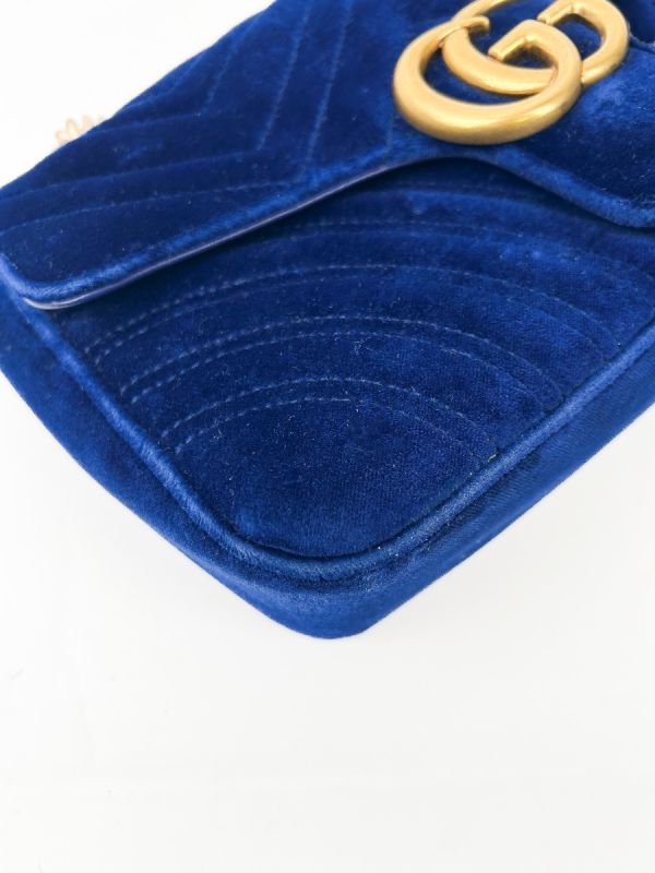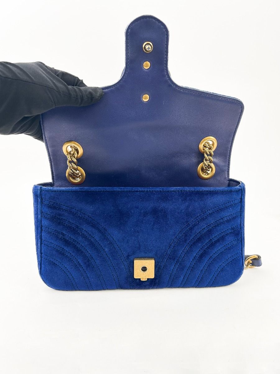 Sac Bandoulière Gucci GG Marmont Small En Velours Bleu