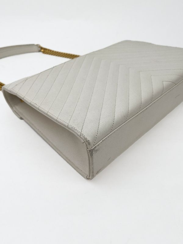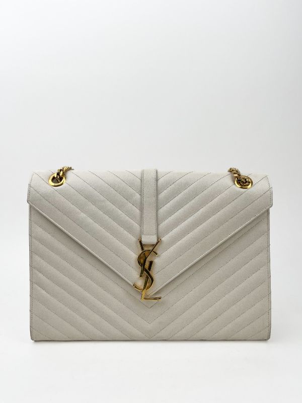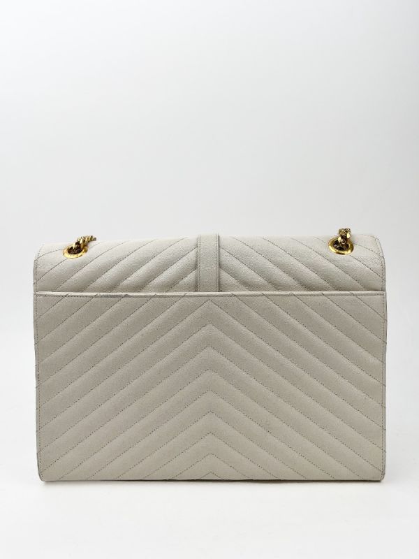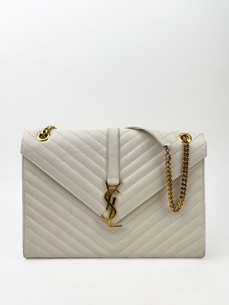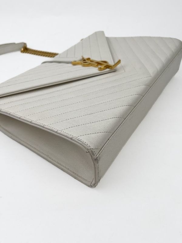 Sac Bandoulière Saint Laurent Enveloppe en Cuir Matelassé Chevrons Blanc Cassé