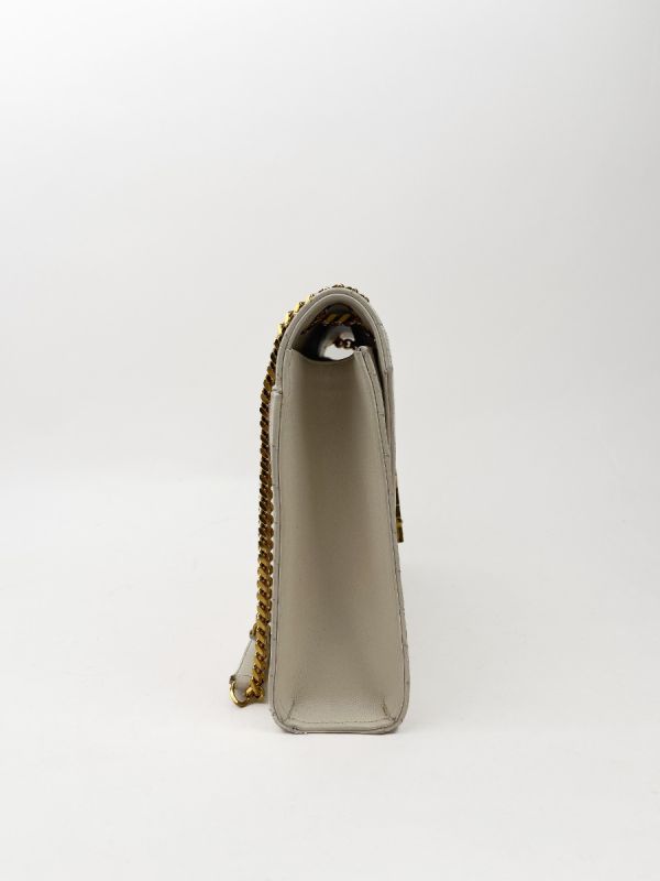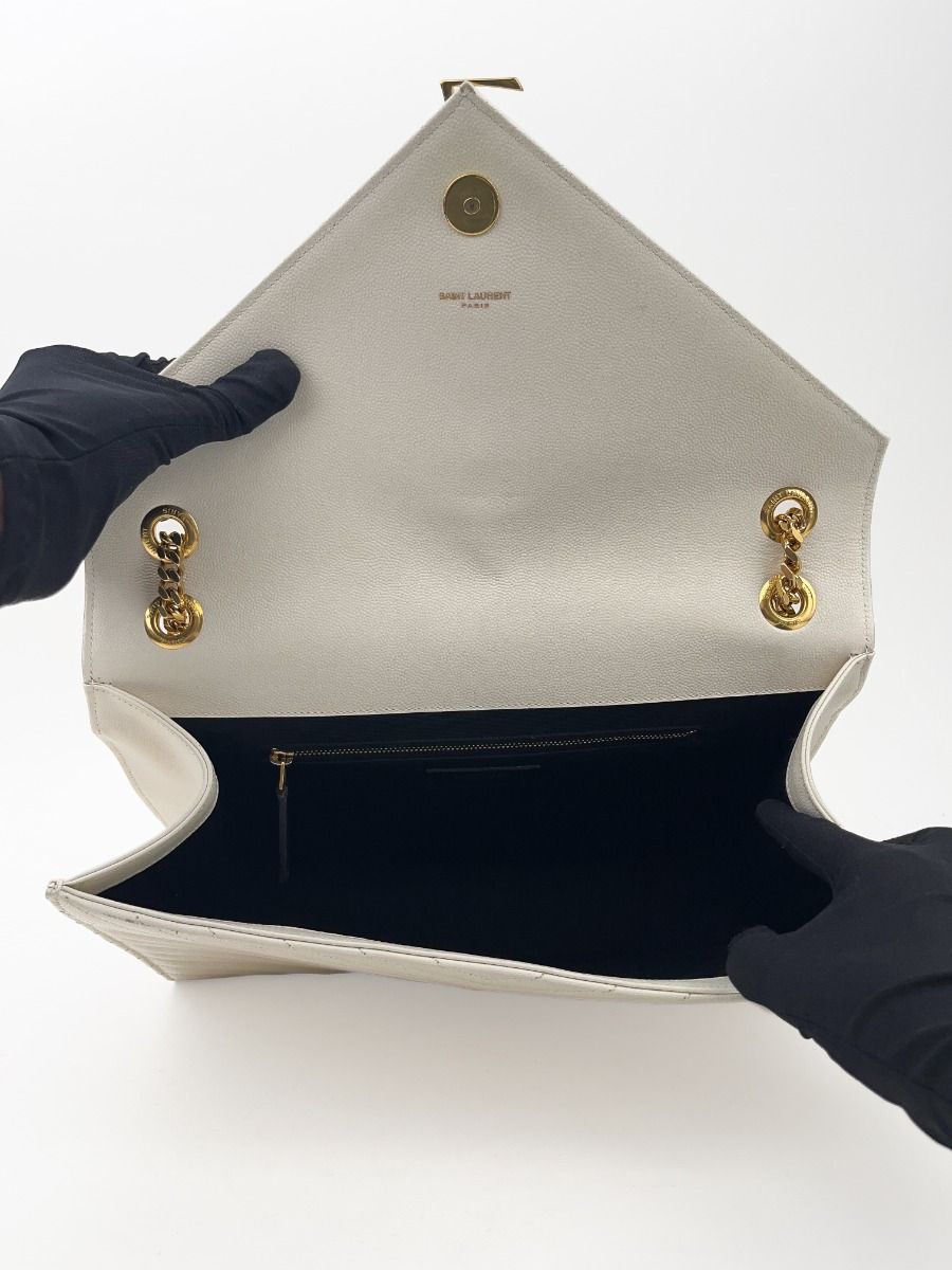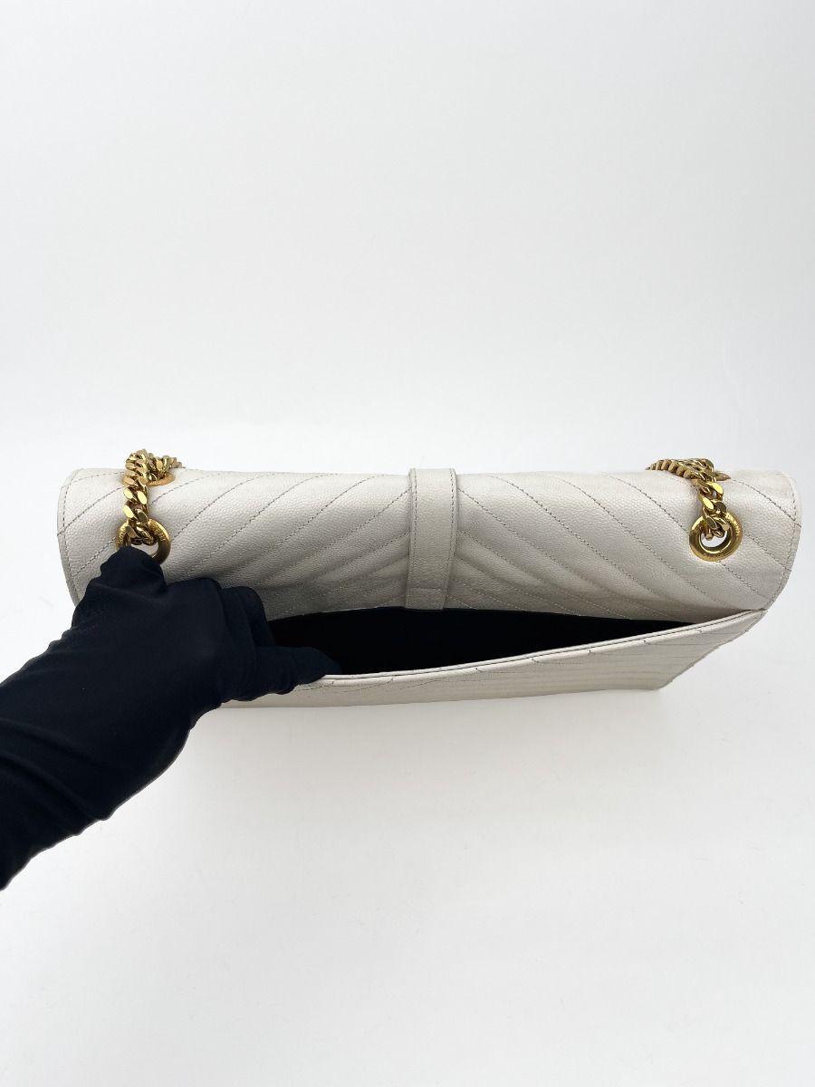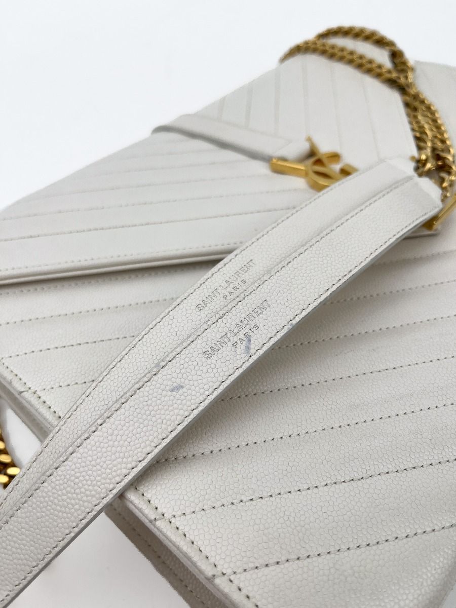 Sac Bandoulière Saint Laurent Enveloppe en Cuir Matelassé Chevrons Blanc Cassé