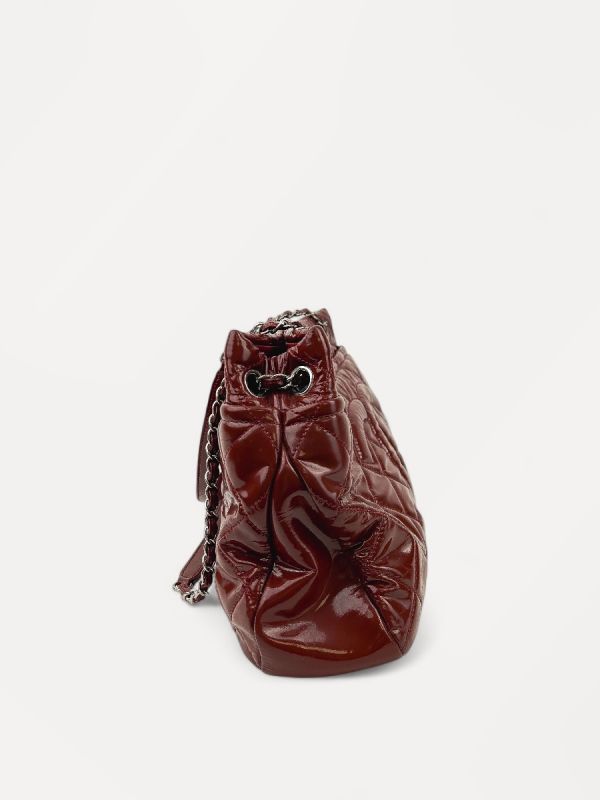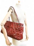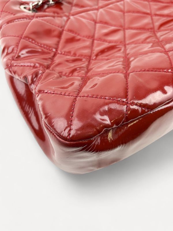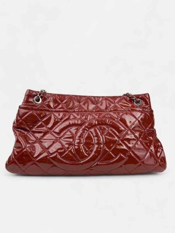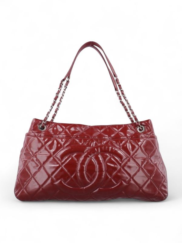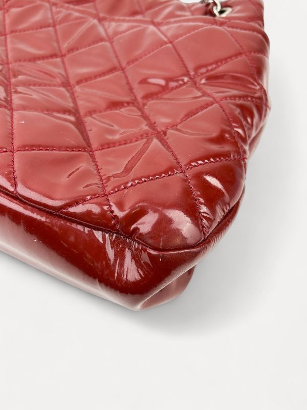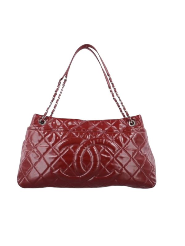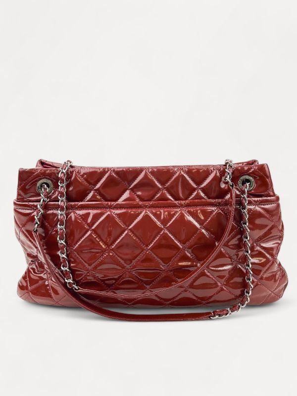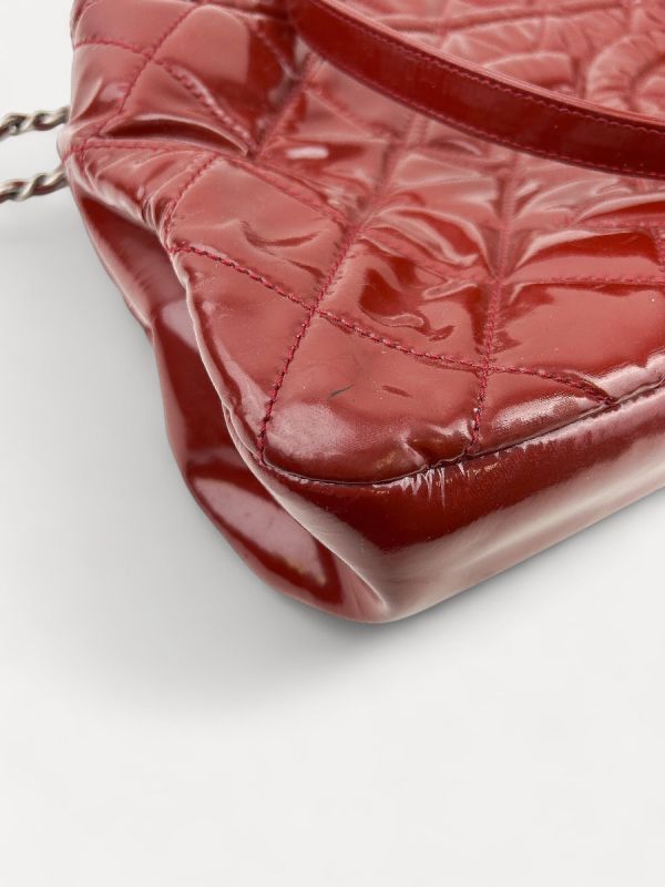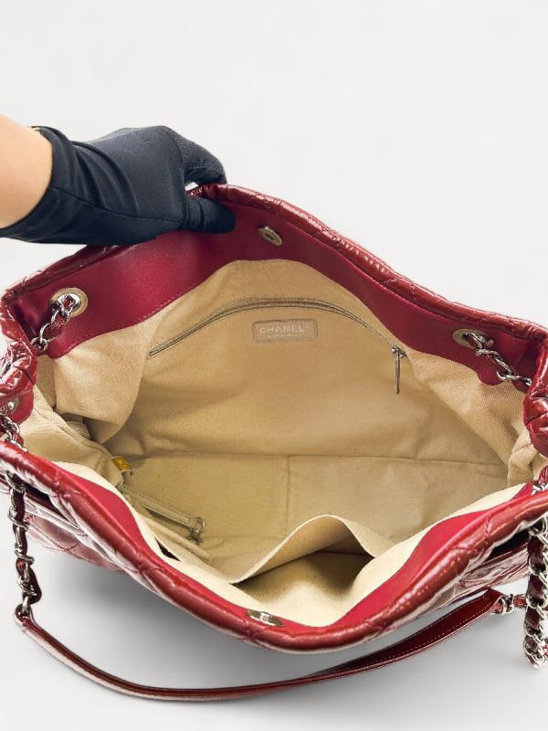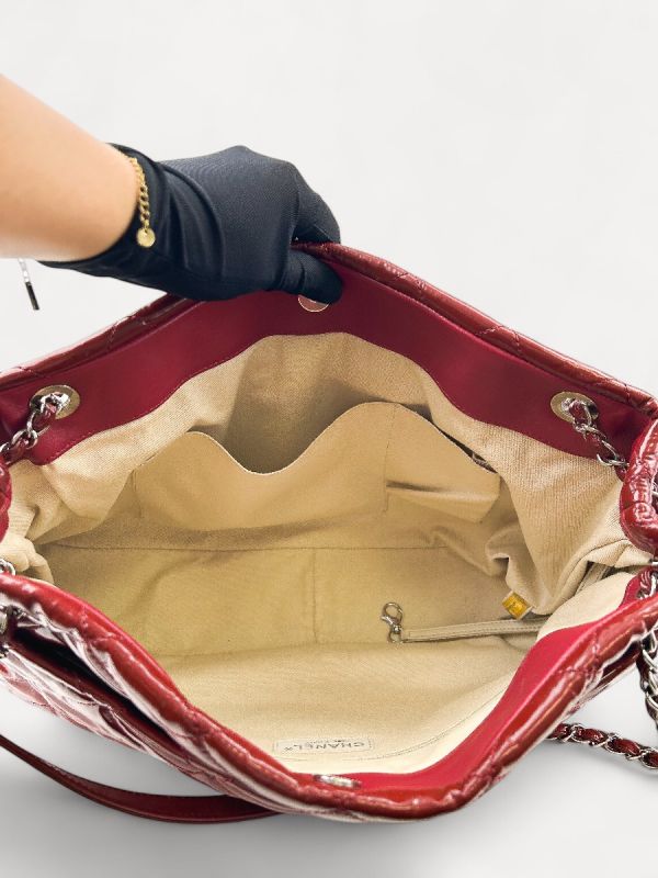 Élégant et intemporel, ce sac Cabas Chanel en cuir verni rouge incarne à la perfection le savoir-faire et le raffinement de la Maison. Son cuir matelassé brillant, sublimé par le logo CC embossé à l’avant, lui confère une allure à la fois chic et moderne. Pratique et spacieux, il se porte à l’épaule grâce à ses anses en chaîne entrelacées de cuir, alliant confort et élégance au quotidien.
