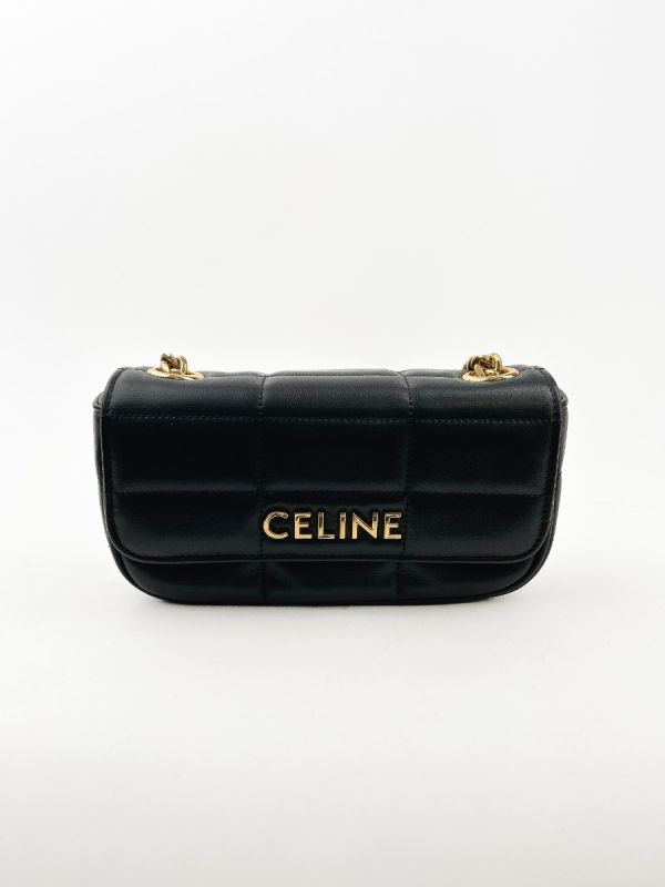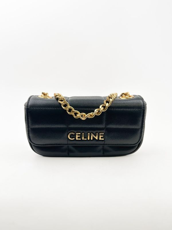 Sac Céline À Chaîne En Cuir Matelassé Noir Monochrome