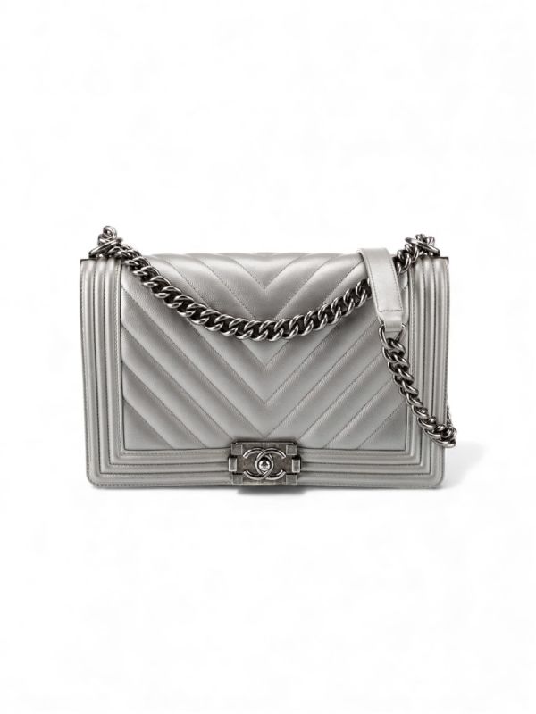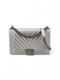 Sac Chanel Boy Large En Cuir Matelassé Gris