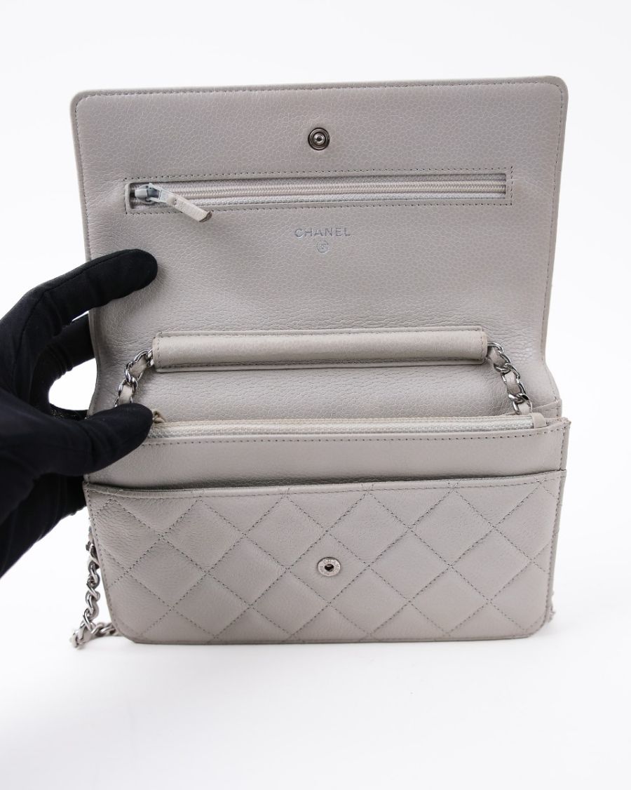 Sac Chanel Wallet On Chain En Cuir D’agneau Gris Perle