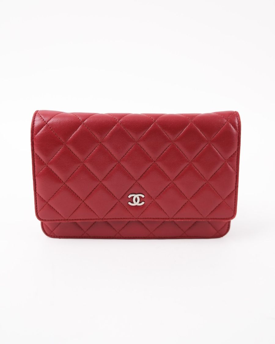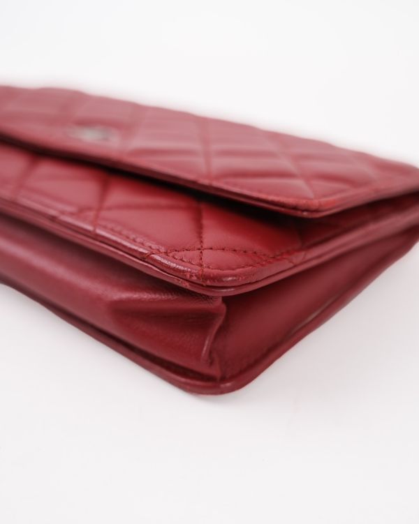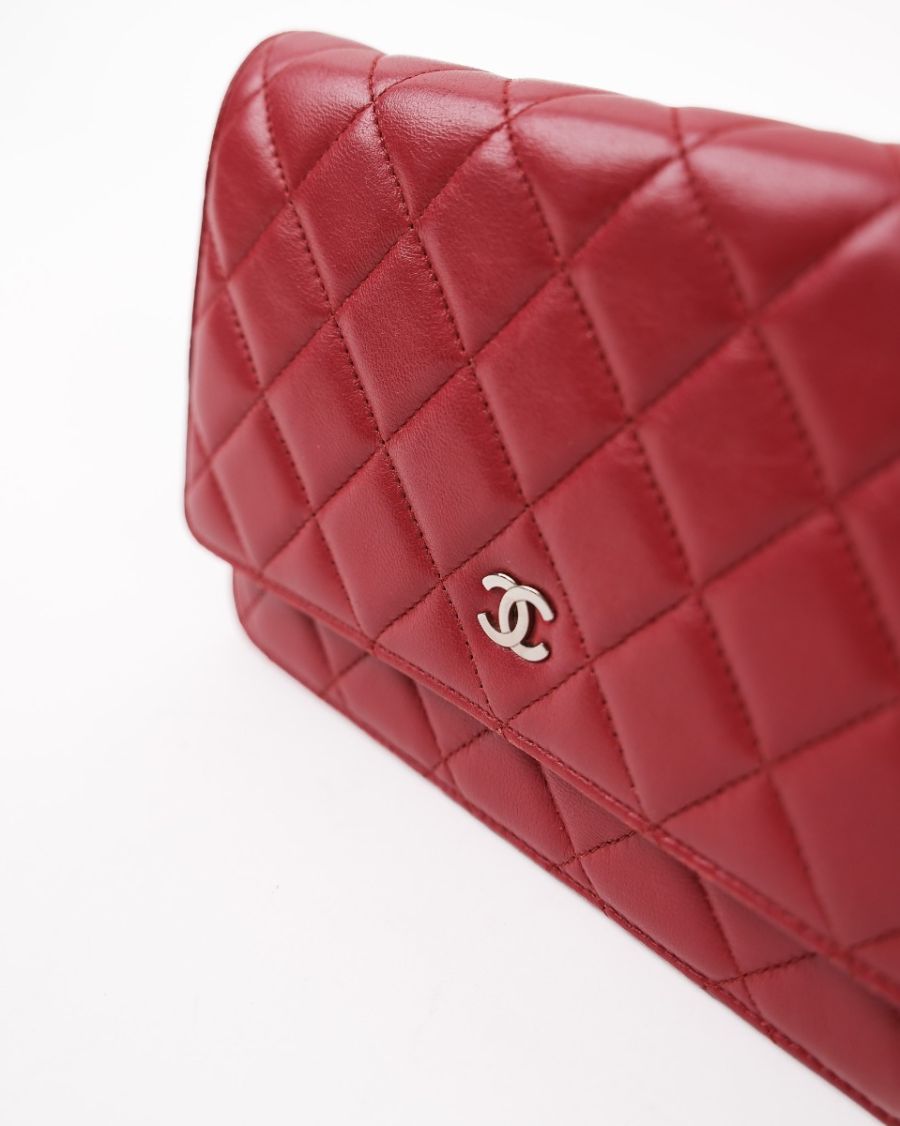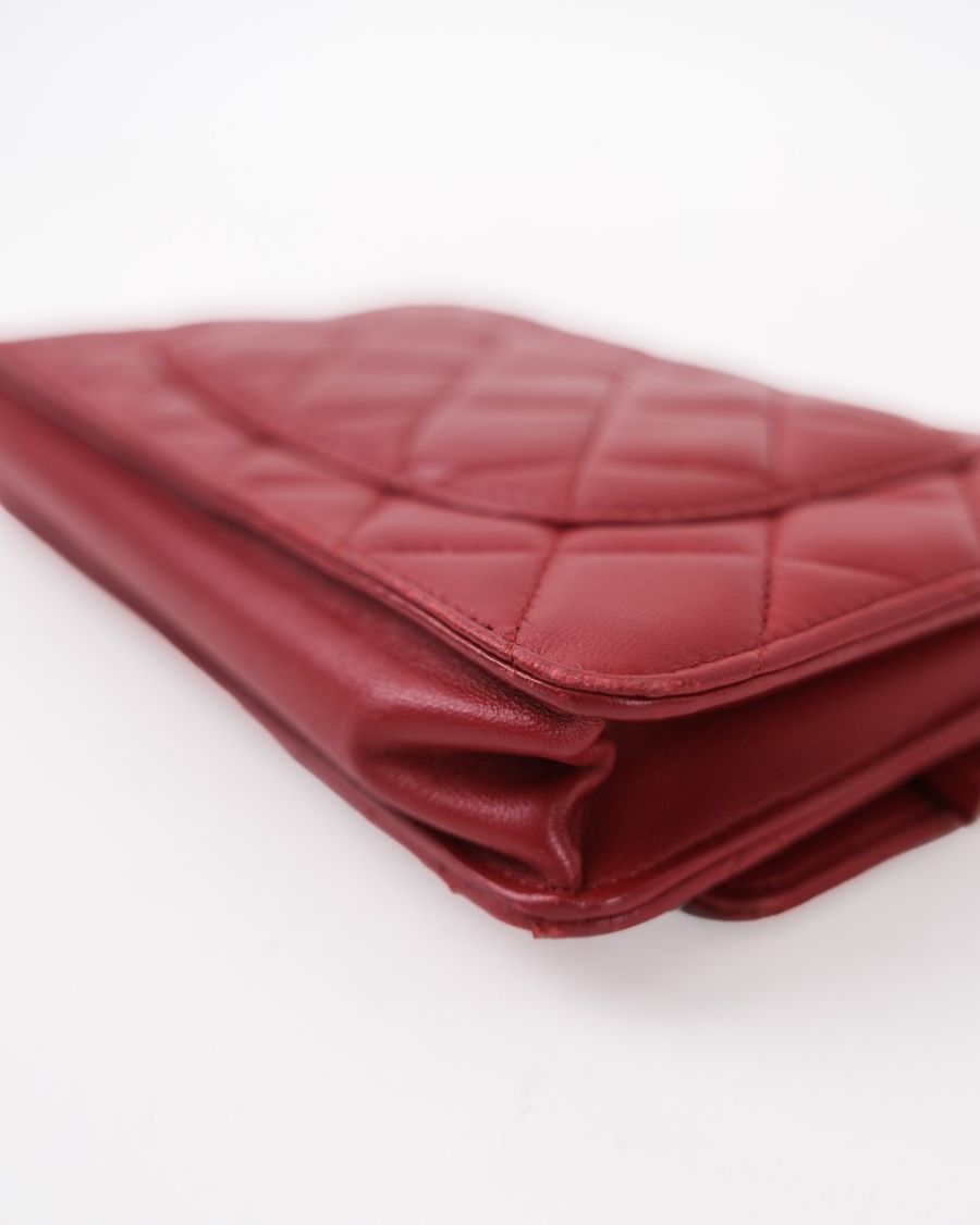 Sac Chanel Wallet On Chain En Cuir D’agneau Rouge Foncé