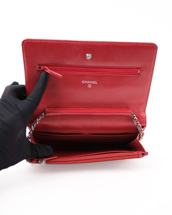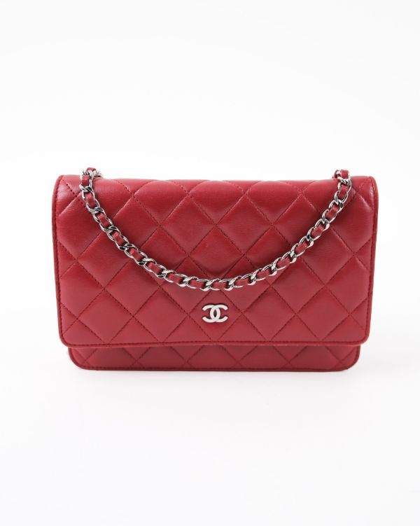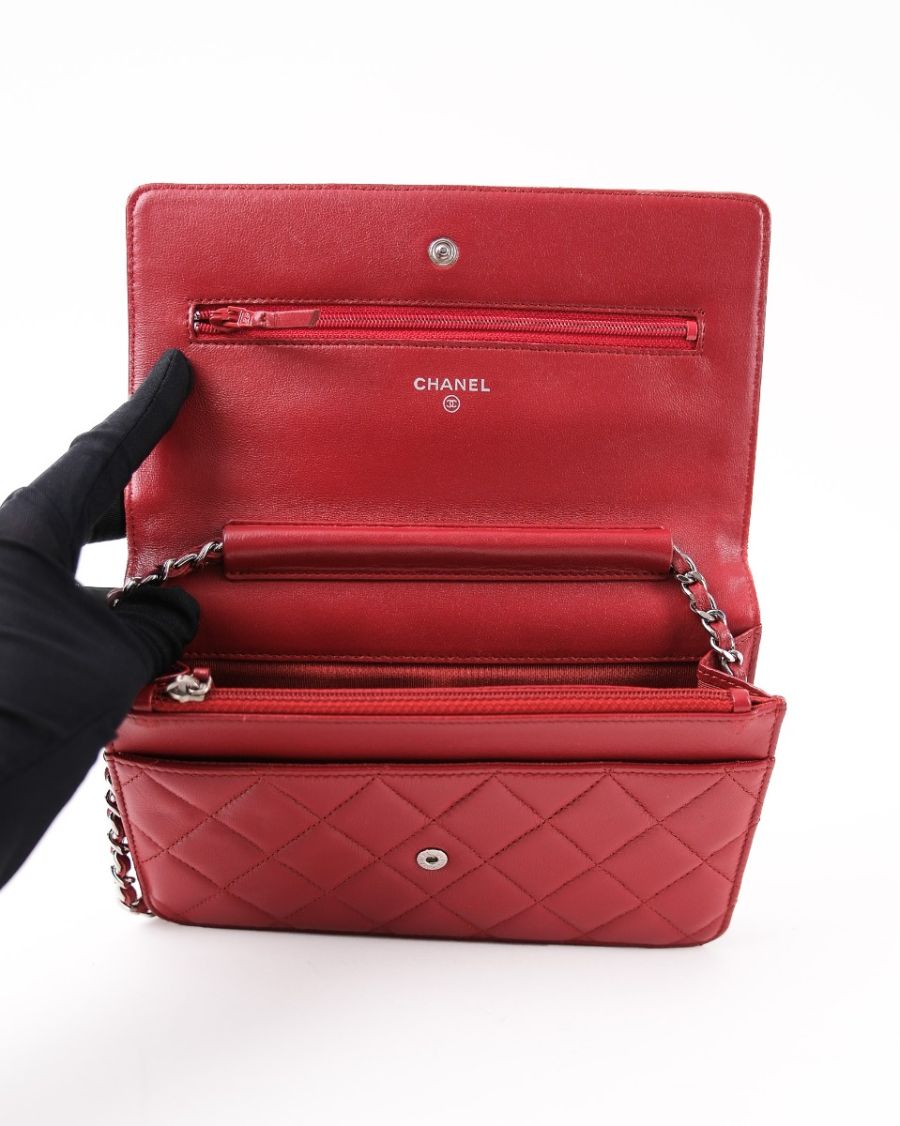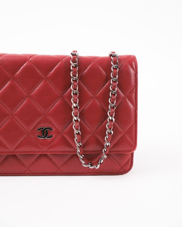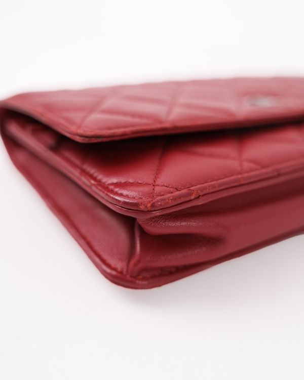 Sac Chanel Wallet On Chain En Cuir D’agneau Rouge Foncé