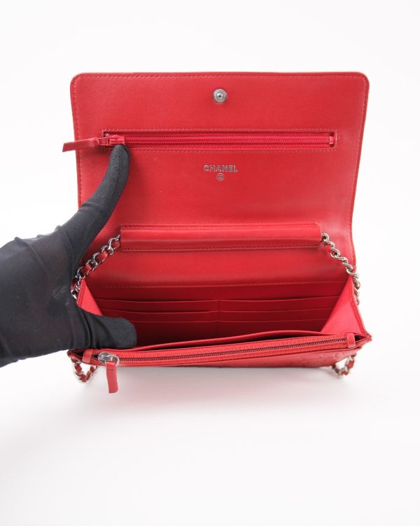 Sac à Bandoulière Chanel Wallet On Chain En Cuir Rouge
