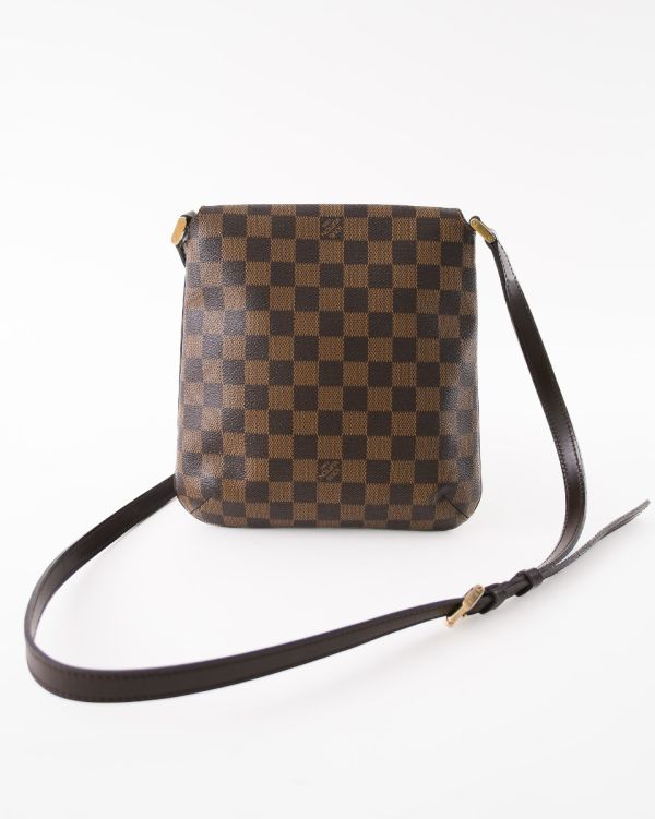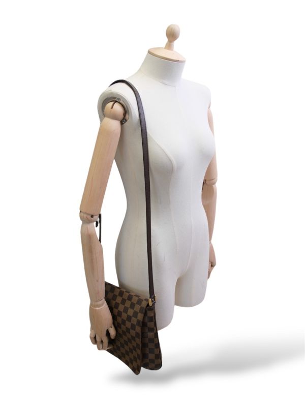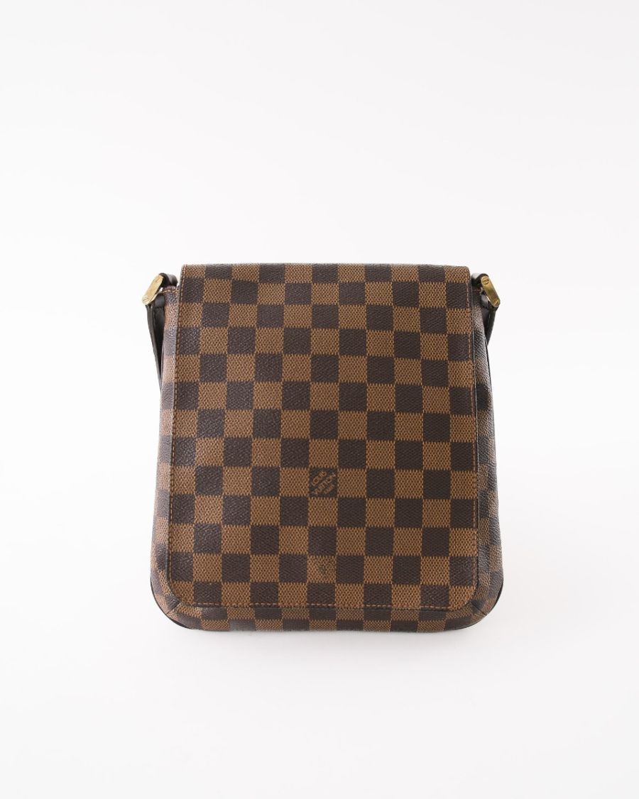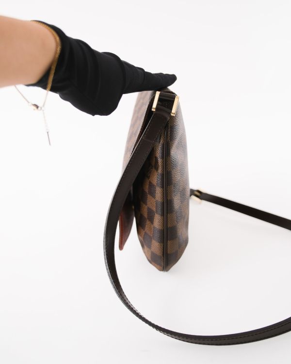 Sac Louis Vuitton Musette Salsa en toile Damier Ébène, au format compact et pratique. Il se distingue par son design sobre et intemporel, sa bandoulière réglable permettant un porté épaule ou croisé, et sa silhouette plate idéale au quotidien. Un modèle iconique, élégant et fonctionnel.