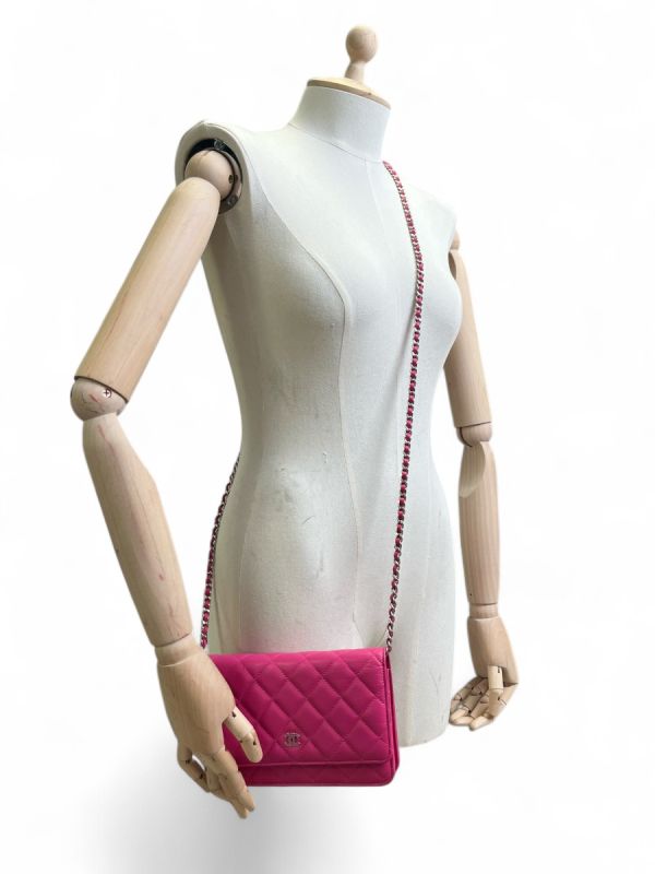 Sac Pochette à Bandoulière Chanel Wallet On Chain En Cuir D'Agneau Rose