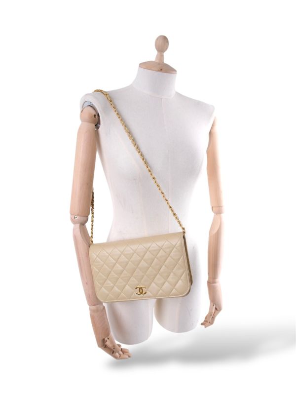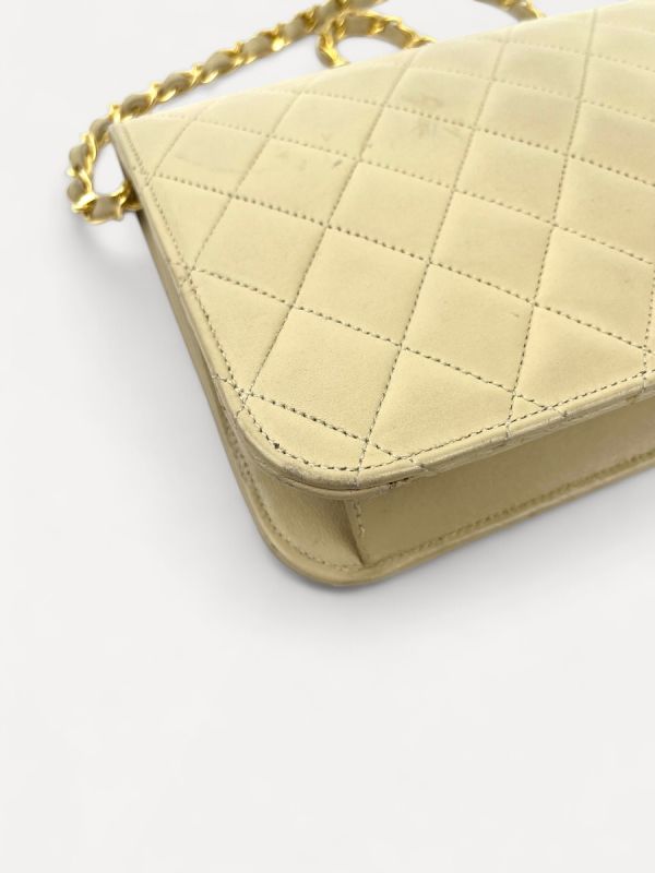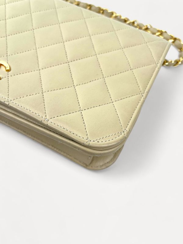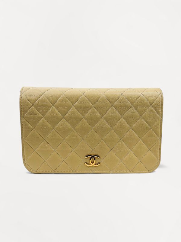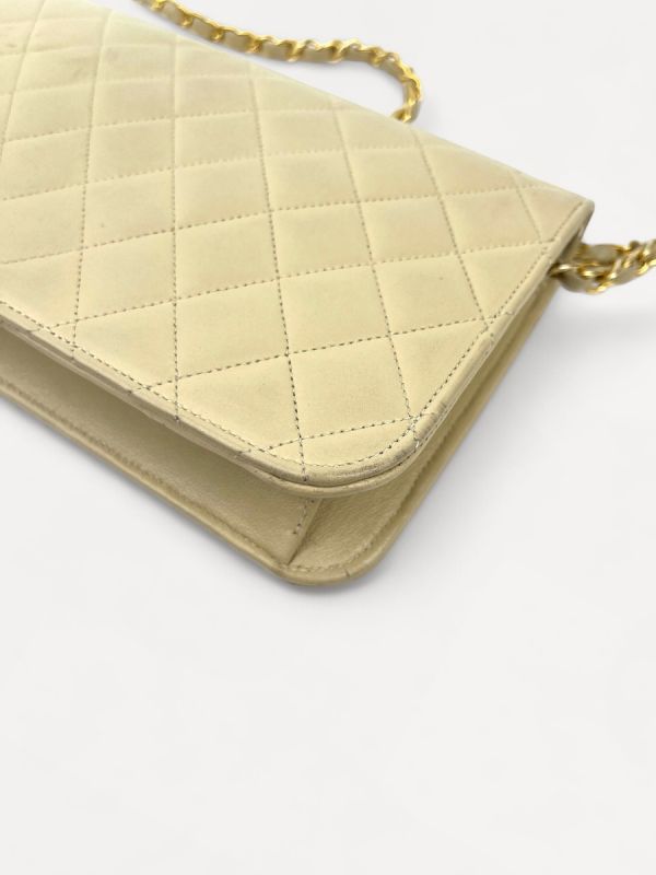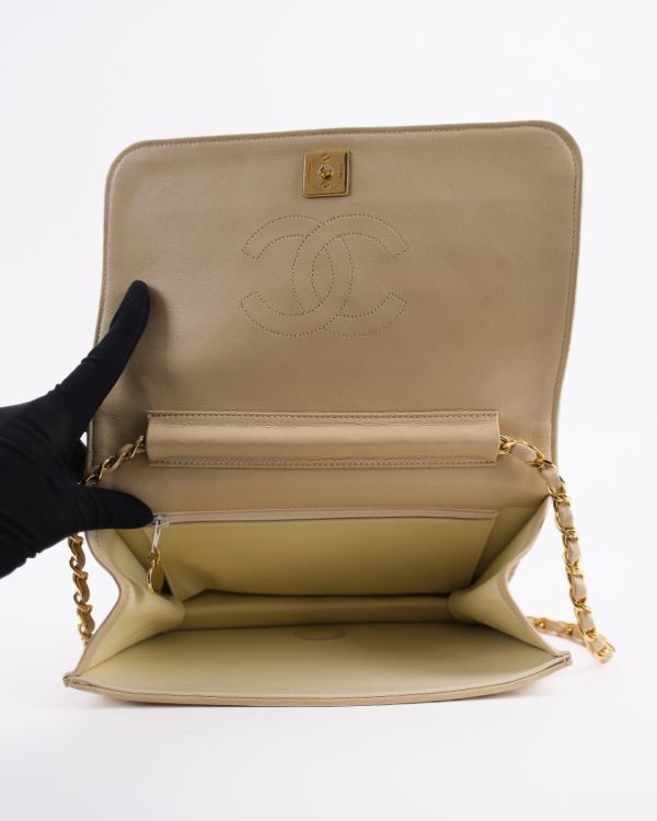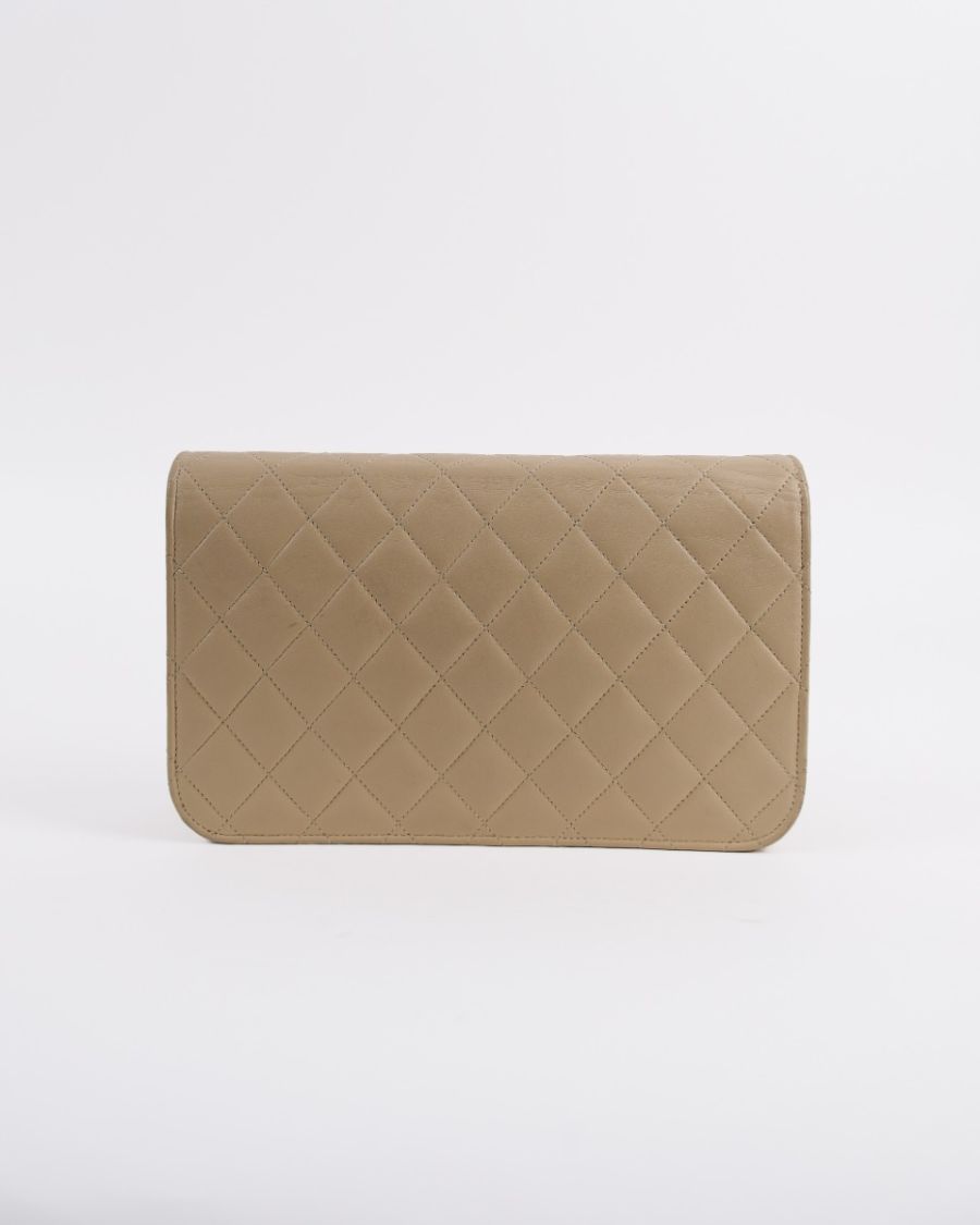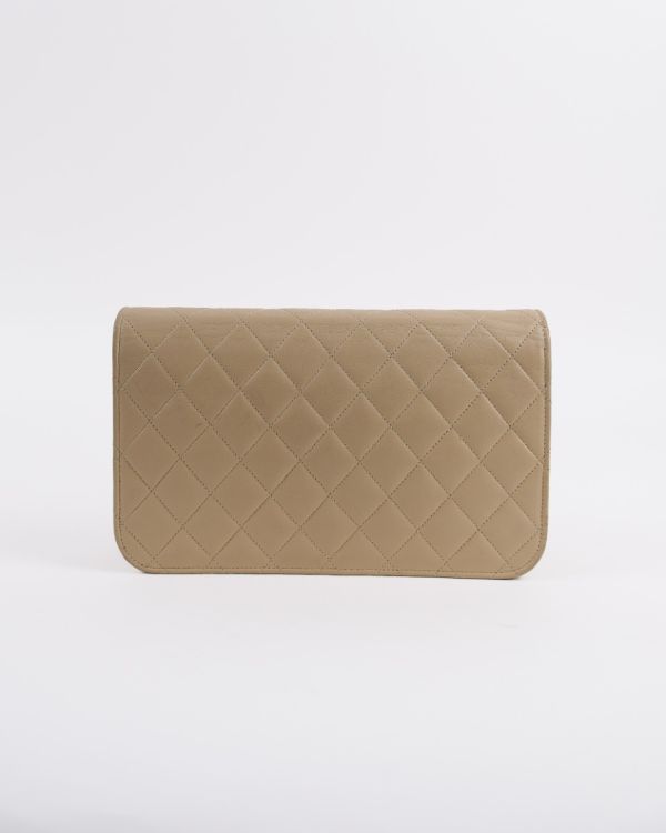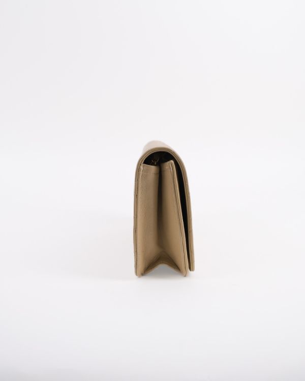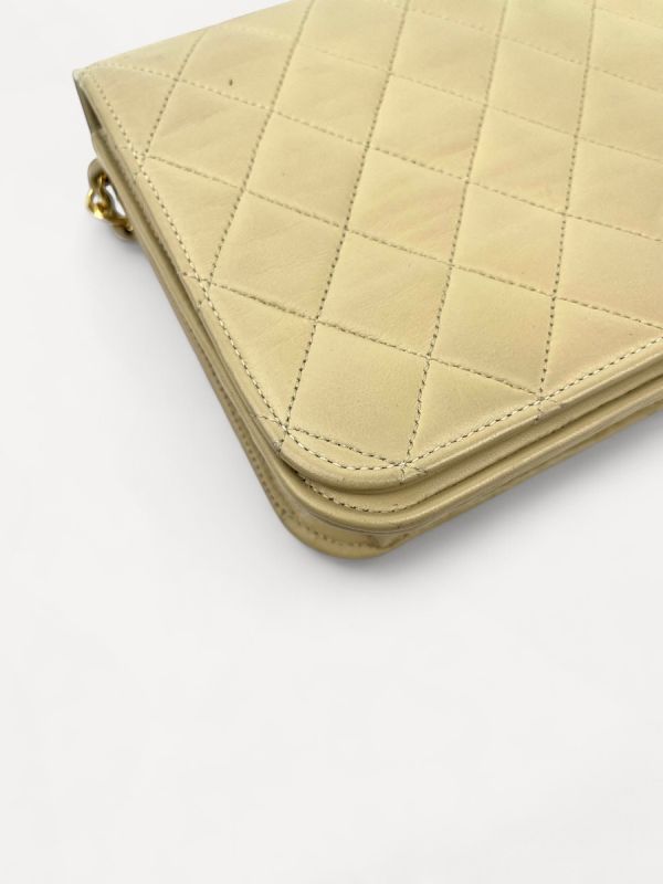 Sac Pochette Chanel Vintage En Cuir D'Agneau Beige