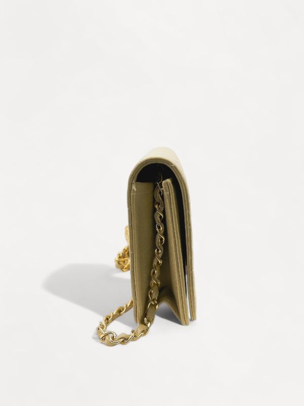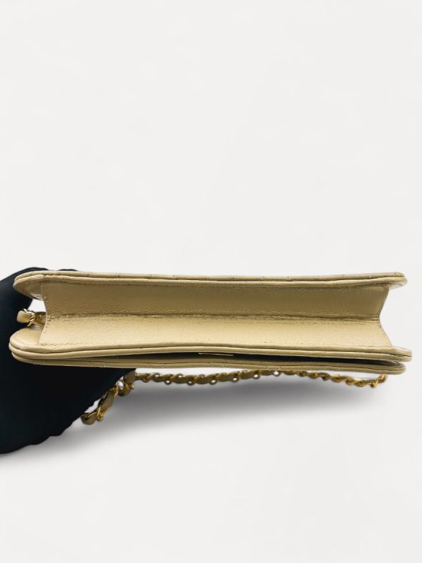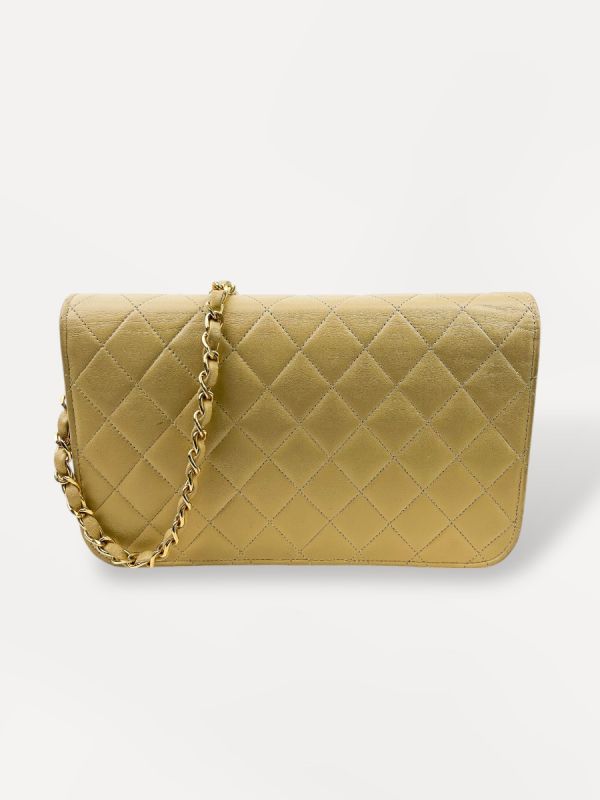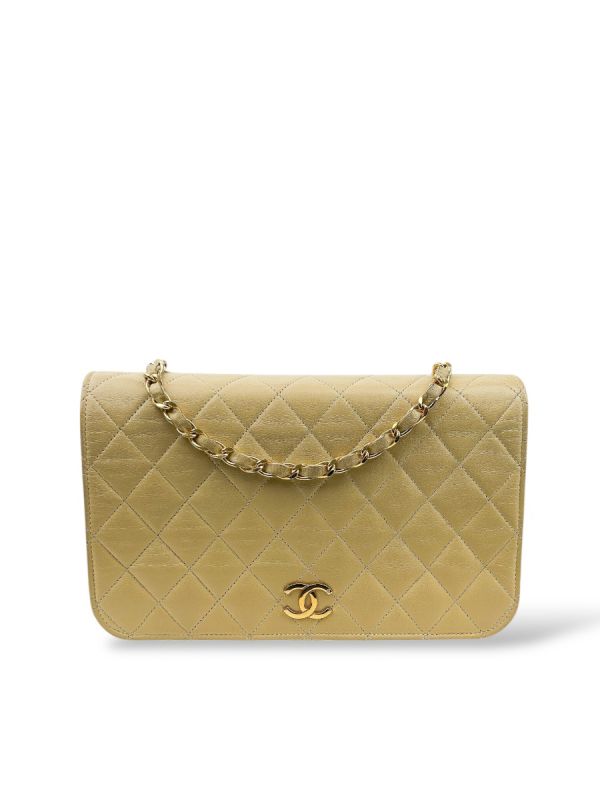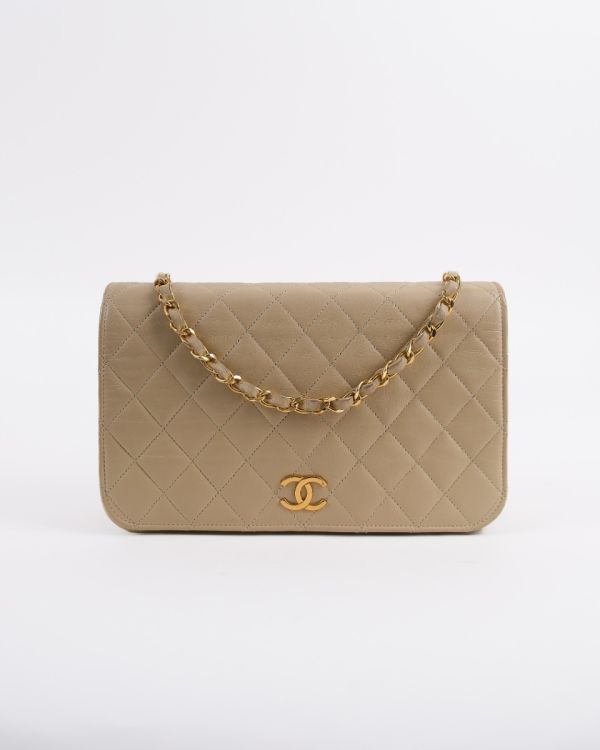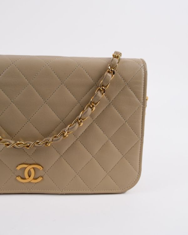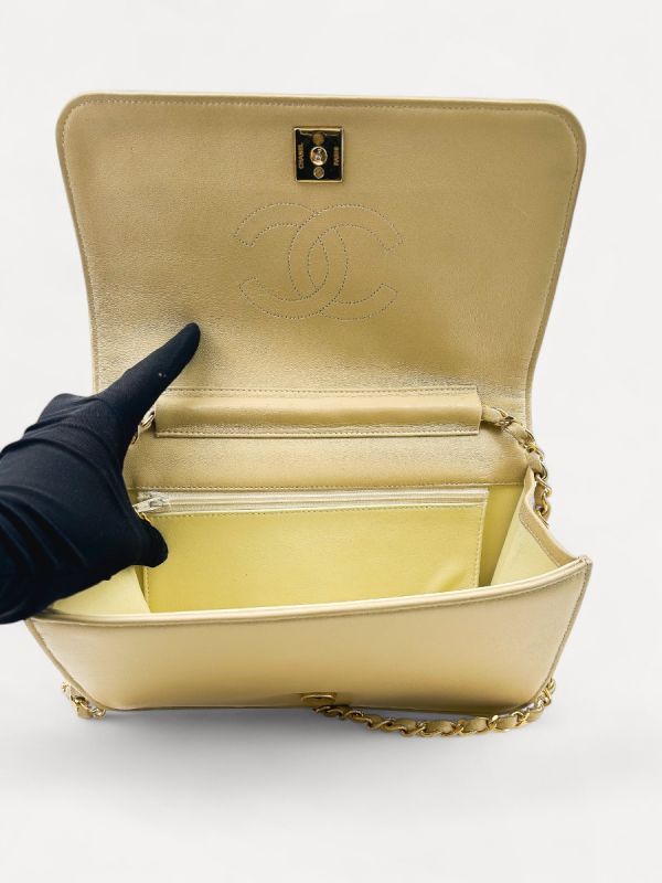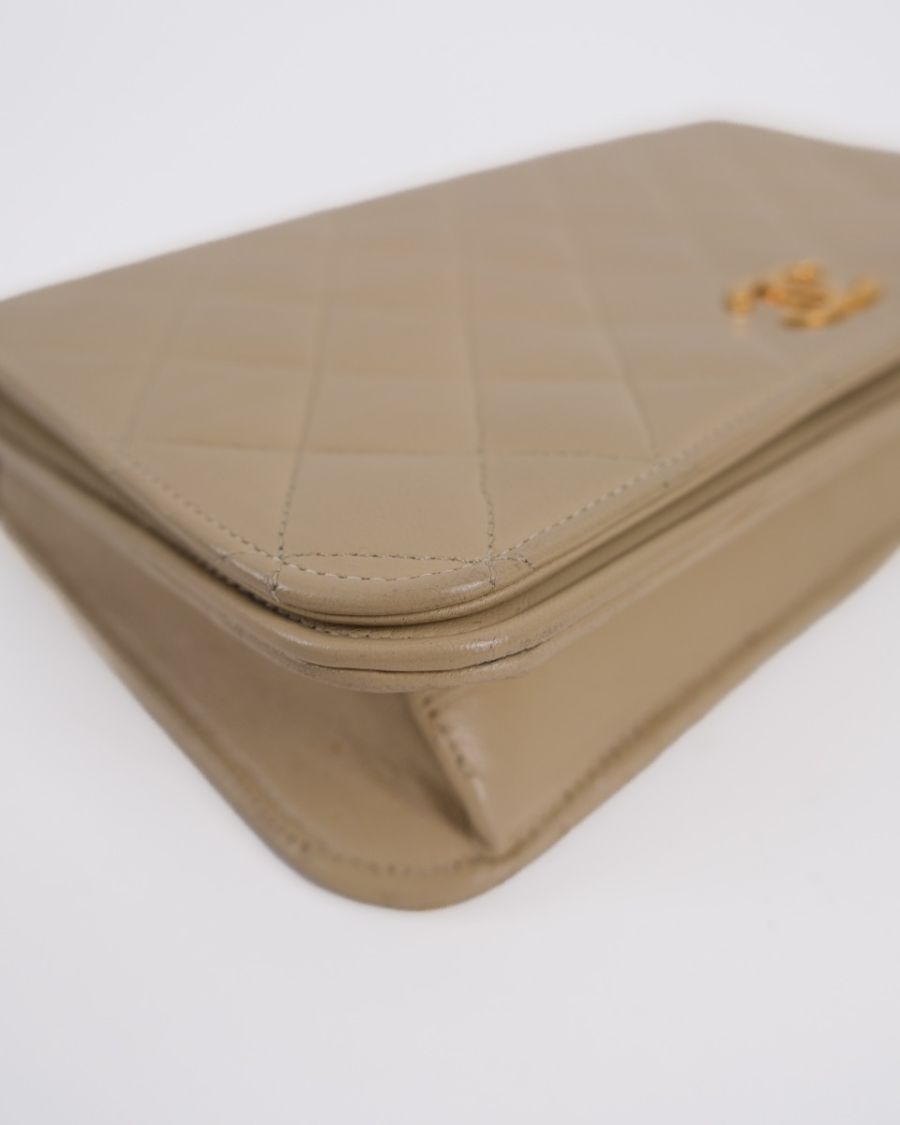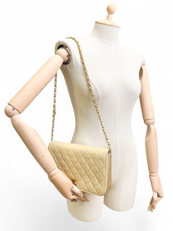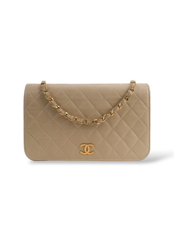 Sac Pochette Chanel Vintage En Cuir D'Agneau Beige