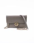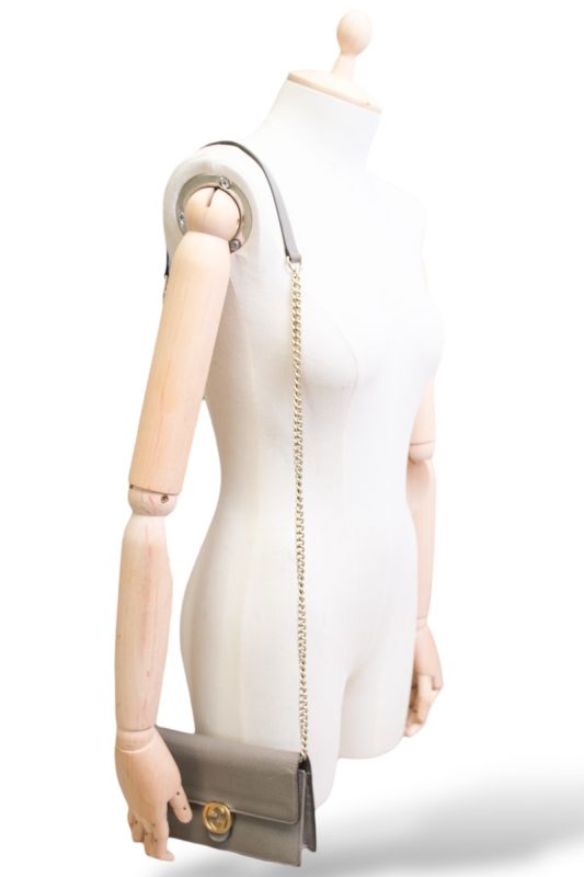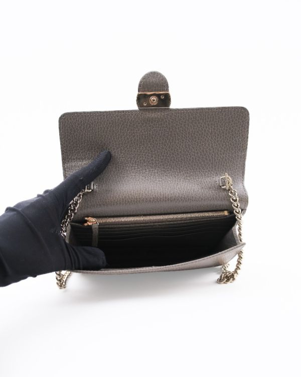 Sac Pochette Gucci Wallet On Chain En Cuir Gris Grainé