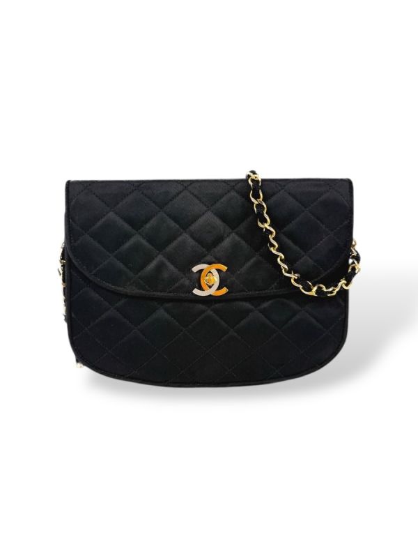 Sac Vintage Chanel En Satin Noir