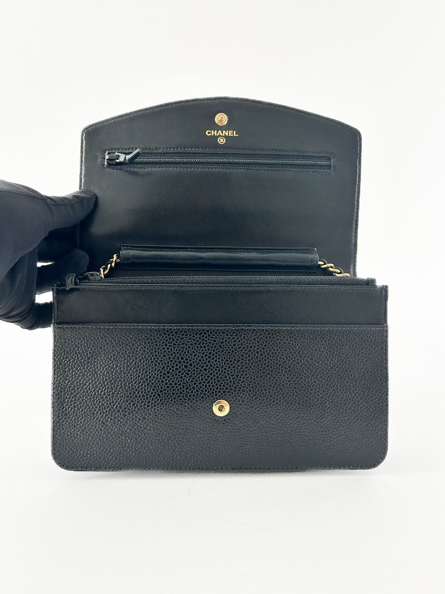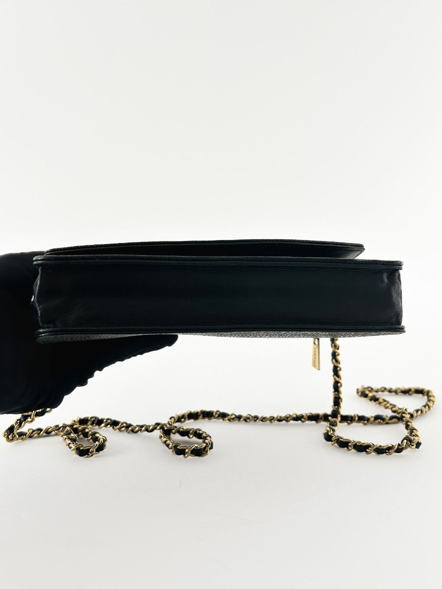 Sac élégant en cuir noir grainé, sublimé par une chaîne dorée raffinée offrant un porté épaule ou crossbody. Son design structuré et intemporel en fait une pièce emblématique, idéale pour accompagner aussi bien une tenue de jour qu’un look de soirée. Un incontournable de la maroquinerie de luxe, alliant sophistication, praticité et valeur durable.